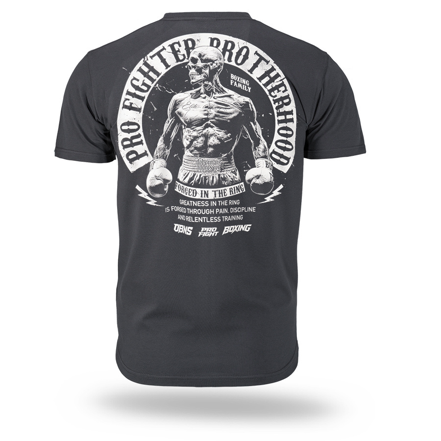 Koszulka PRO FIGHTER od marki Dobermans Aggressive to klasyczna odzież uliczna od Doberman’s Aggressive, która czerpie z bokserskiej pasji i sportowego ducha walki. Koszulka o prostym kroju gwarantuje pełną wygodę, a potężna grafika na plecach z motywem zawodnika i hasłem „Forged in the Ring” podkreśla determinację oraz niezłomną dyscyplinę. Solidne wykonanie i mniejsze logo na piersi sprawiają, że to idealny wybór dla osób szukających ubrań o autentycznym, mocnym przekazie, które sprawdzą się w codziennym użytkowaniu.