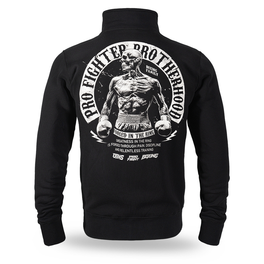Bluza ze stójką PRO FIGHTER to zapinany na zamek model od Doberman’s Aggressive, wyróżniający się surowym, sportowym wykończeniem. Wysoki kołnierz skutecznie chroni przed chłodem, a potężna grafika bokserska na plecach podkreśla ducha walki i determinację. Jest to klasyczna odzież uliczna wyposażona w dwie praktyczne kieszenie, która idealnie łączy techniczną wygodę z autentycznym stylem inspirowanym ringiem.