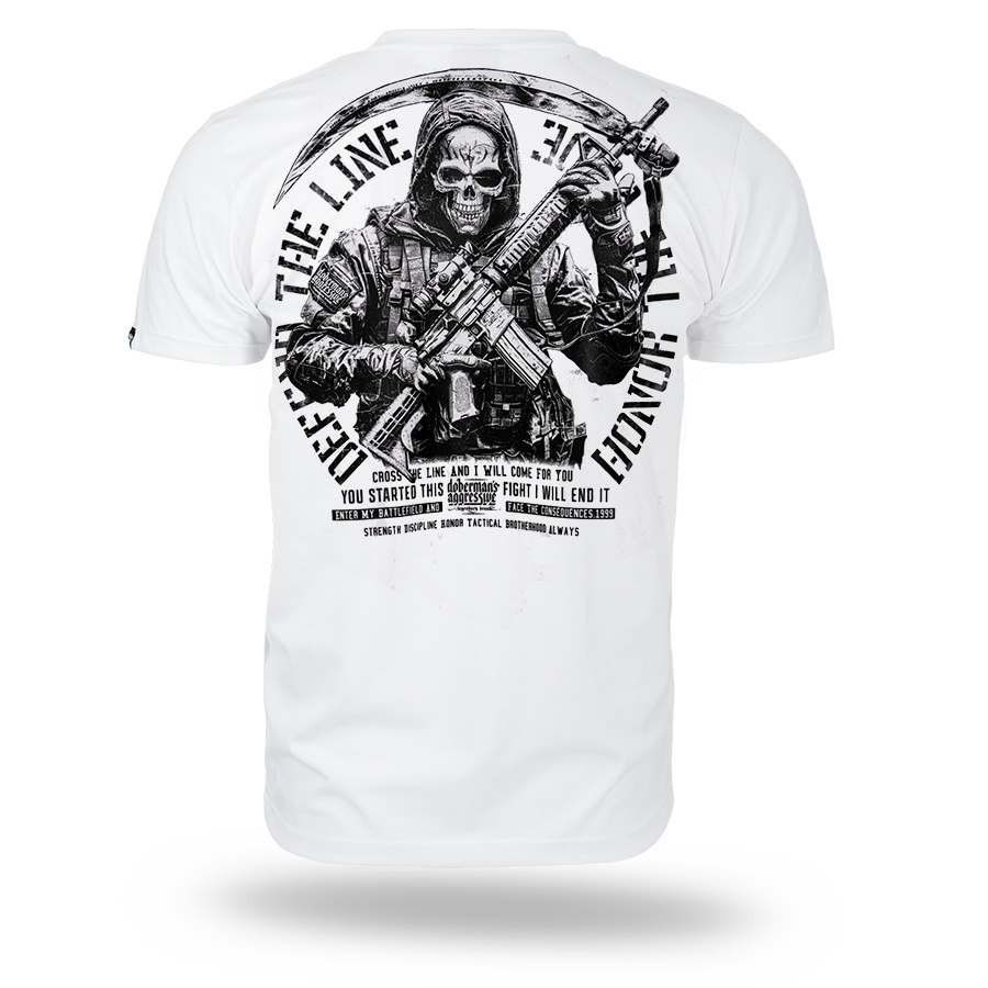 Koszulka TACTICAL II od marki Dobermans Aggressive to wysokiej jakości odzież uliczna, która w naturalny sposób łączy styl militarny z codzienną funkcjonalnością. Koszulka o klasycznym kroju zapewnia pełną wygodę, a potężna grafika na plecach przedstawiająca uzbrojoną postać oraz hasła „Protect – Live – Honor” podkreślają odwagę i gotowość do działania. Solidne wykończenie i minimalistyczny nadruk na piersi sprawiają, że to trwały wybór dla osób szukających ubrań o mocnym, taktycznym charakterze.