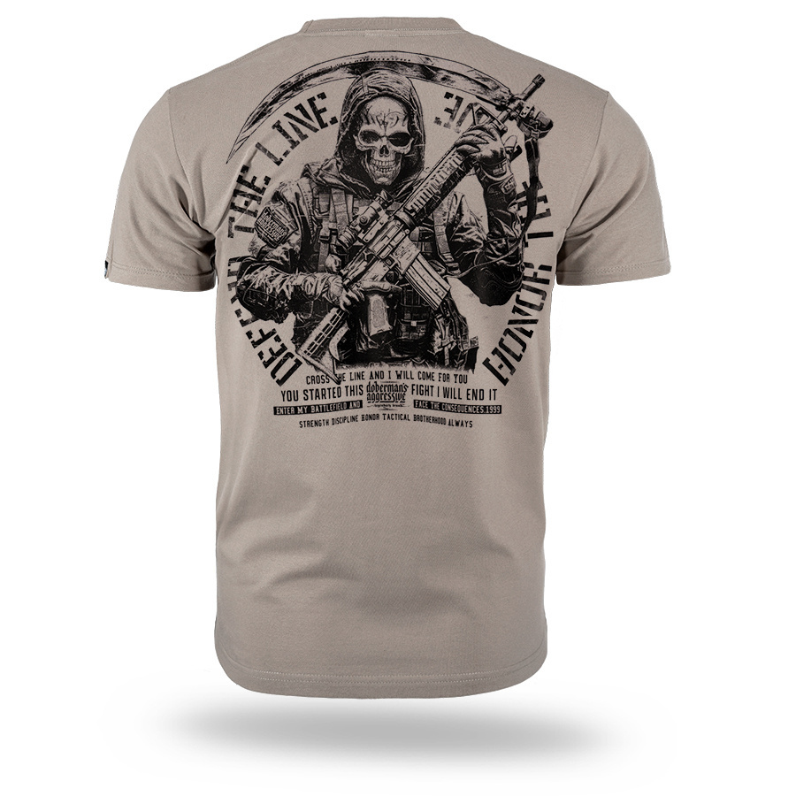 Koszulka TACTICAL II od marki Dobermans Aggressive to wysokiej jakości odzież uliczna, która w naturalny sposób łączy styl militarny z codzienną funkcjonalnością. Koszulka o klasycznym kroju zapewnia pełną wygodę, a potężna grafika na plecach przedstawiająca uzbrojoną postać oraz hasła „Protect – Live – Honor” podkreślają odwagę i gotowość do działania. Solidne wykończenie i minimalistyczny nadruk na piersi sprawiają, że to trwały wybór dla osób szukających ubrań o mocnym, taktycznym charakterze.
