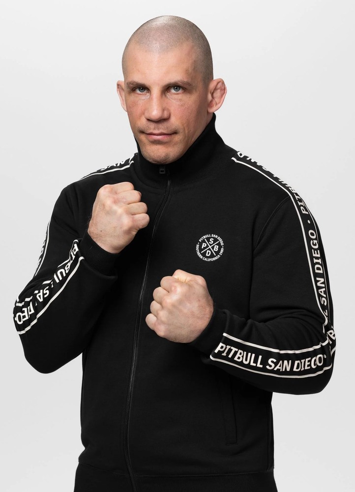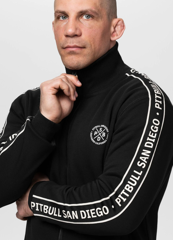 - tkane żakardowe lampasy na całej długości rękawów z napisem PITBULL SAN DIEGO