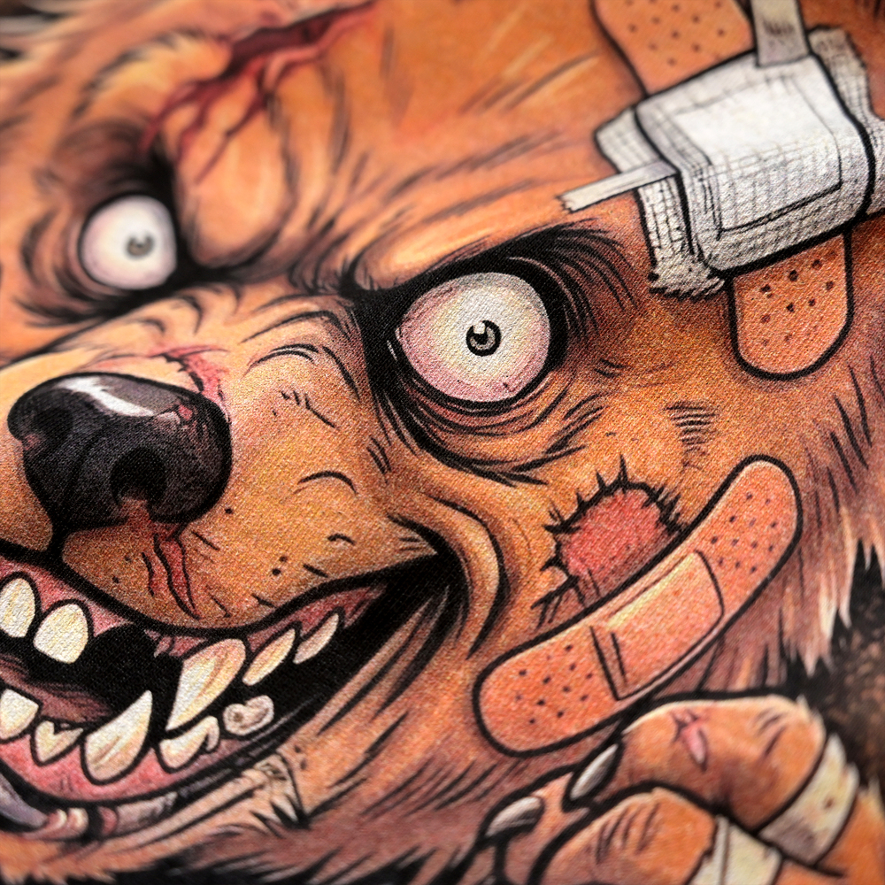 Największe wrażenie robi jednak efektowny nadruk na plecach, który zajmuje znaczną ich część. Przedstawia on postać wściekłego niedźwiedzia z kijem bejsbolowym, ubranego w bluzę i owiniętego bandażami. Wysokiej jakości grafika oraz napisy nawiązujące do hardcore & streetwear brand podkreślają silny charakter właściciela. Męska bluza z motywem misia została uszyta z grubej, mięsistej bawełny, która zapewnia doskonałą izolację termiczną i komfort noszenia w chłodniejsze dni. Bluza wyposażona jest w ściągacze przy rękawach i na dole bluzy, które gwarantują idealne dopasowanie do sylwetki.