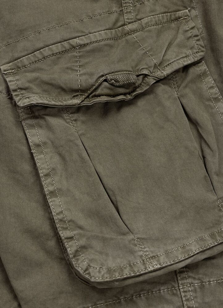 - dwie naszyte duże kieszenie z klapami na nogawkach