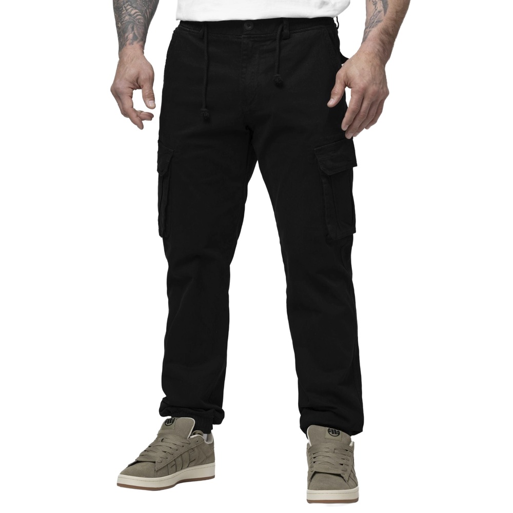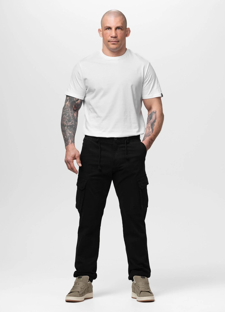- dwie naszyte duże kieszenie z klapami na nogawkach