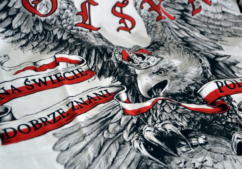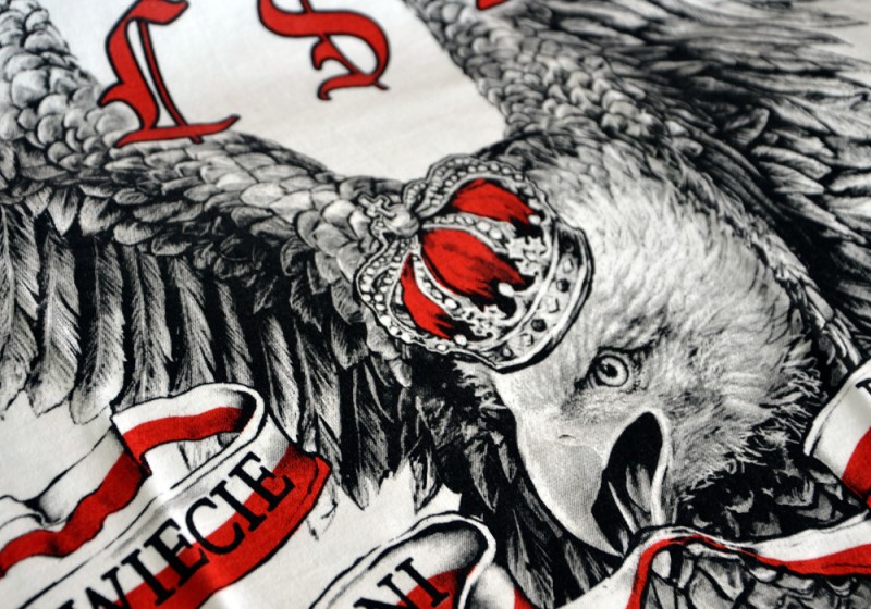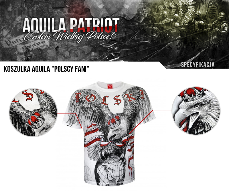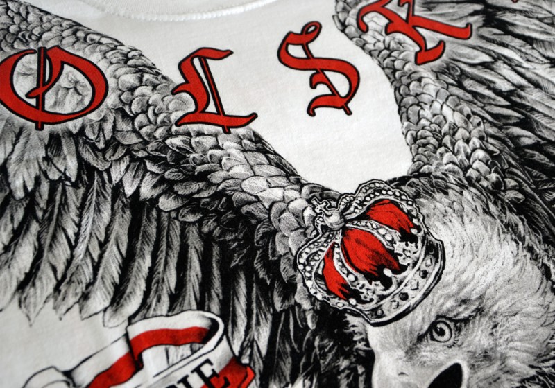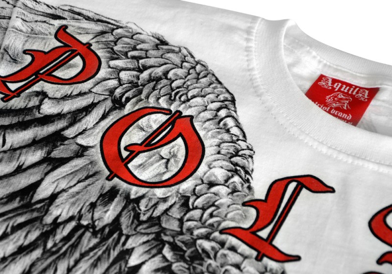 Patriotyczna koszulka wykonana przez polskiego producenta odzieży - Aquila. Podczas projektowania oraz wykonania koszulki zadbano o jej najdrobniejsze detale. Nadruk na koszulce wykonany został przy pomocy sitodruku. Jest bardzo trwały i nie ulega zniszczeniu podczas użytkowania. Produkt należy prać w temperaturze nie przekraczającej 40 stopni, pozwoli to zdecydowanie dłużej zachować trałość nadruku.