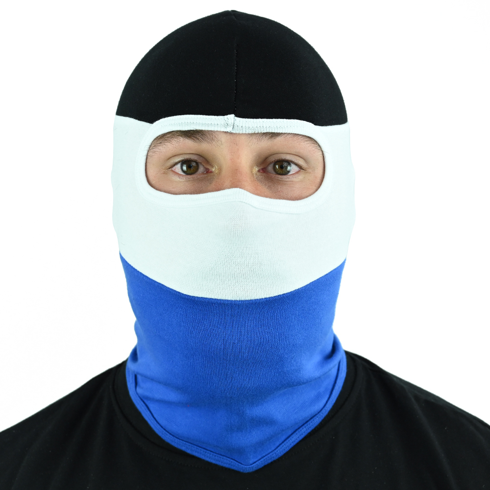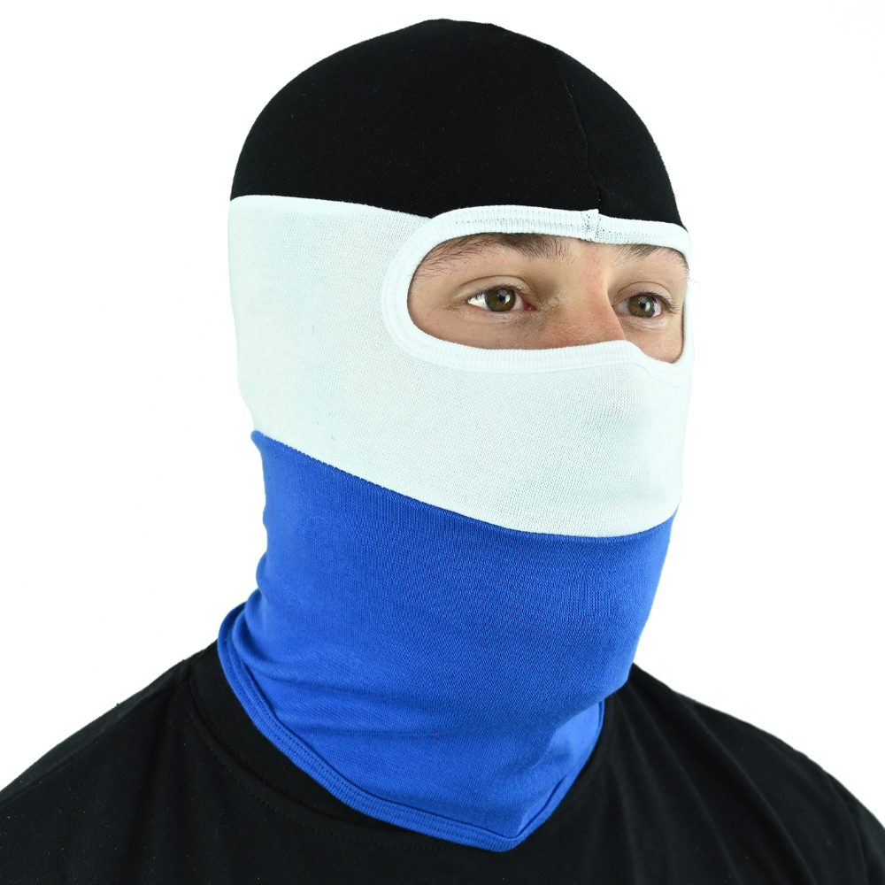 Kominiarka z wysokiej jakości dzianiny bawełnianej z dodatkiem lycry, zachowuje swój kształt, elastycznośc czy wygląd nawet po wielokrotnym użytkowaniu. Kominiarka od strony twarzy nie posiada szwa, natomiast od strony karku zszyta jest potrójnym płaskim szwem co zapewnia, że idealnie dopasowuje się do kształtu głowy. Otwór na oczy oraz dół kominiarko obszyte zostały lamówką o szerokości 1 cm.