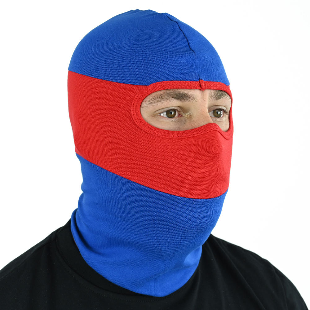 Kominiarka z wysokiej jakości dzianiny bawełnianej z dodatkiem lycry, zachowuje swój kształt, elastycznośc czy wygląd nawet po wielokrotnym użytkowaniu. Kominiarka od strony twarzy nie posiada szwa, natomiast od strony karku zszyta jest potrójnym płaskim szwem co zapewnia, że idealnie dopasowuje się do kształtu głowy. Otwór na oczy oraz dół kominiarko obszyte zostały lamówką o szerokości 1 cm.