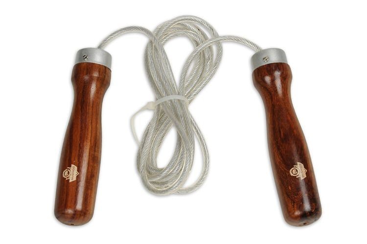 Skakanka bokserska SR-2 to model skakanki wyposażony w wygodne drewniane rączki zakończone stalowym łożyskiem dzięki czemu praca skakanki jest płynna i wygodna. Stalowa linka osłonięta silikonową osłonką zapewnia jej trwałość. Skakanka dzięki stalowej lince należy do tzn. "skakanek szybkich"