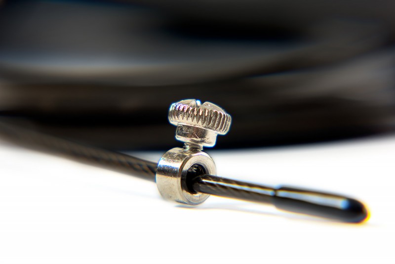 Metalowy stoper umożliwia precyzyjne dopasowanie długości skakanki do swoich indywidualnych potrzeb. Po dopasowaniu długości linki poprzez właściwe dokręcenie blokad należy odciąć jej nadmiar.