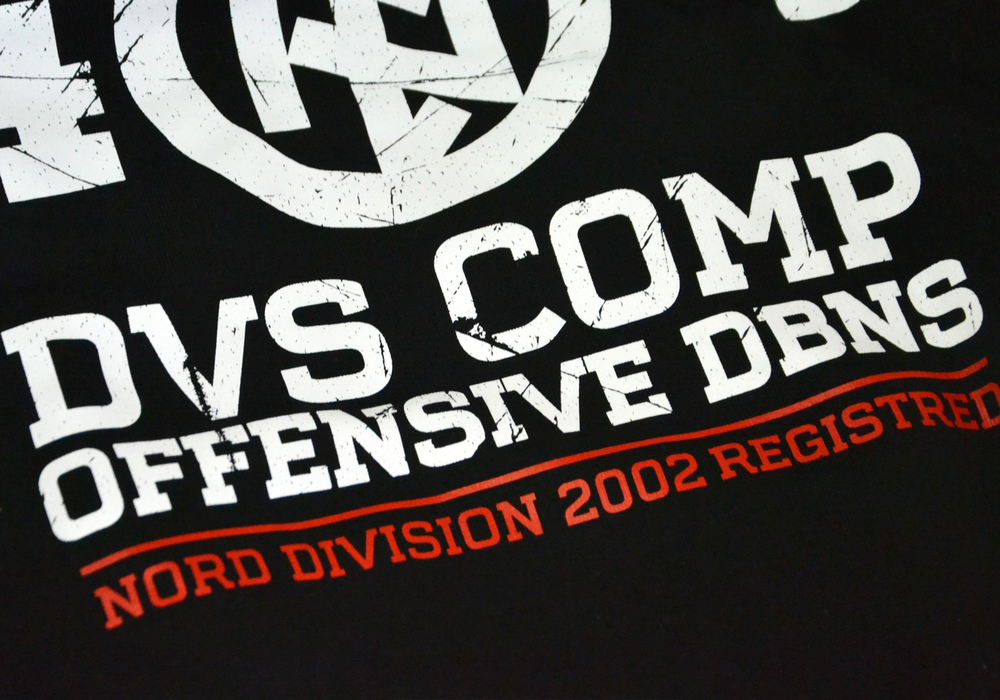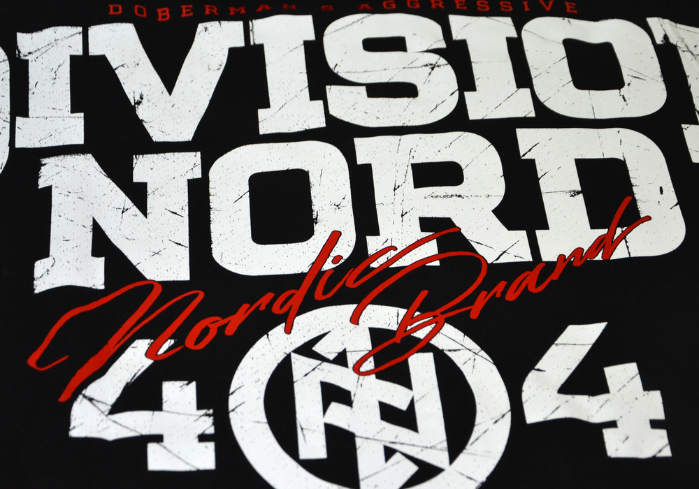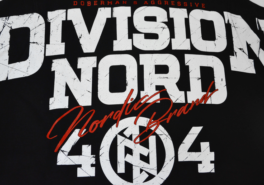 Classic men's slipped-over sweatshirt. The model is made of high-quality cotton with a weight of 320 g and finished with durable cuffs. At the neck there is a reinforcement in the form of an inner pleat. The back is covered with a large print with a damaged effect. Division Nord and DVS Comp subtitles account for a significant portion of the material. The pattern uses several types of fonts and two colors. The left breast is decorated with a small print with the motif of the number 404.