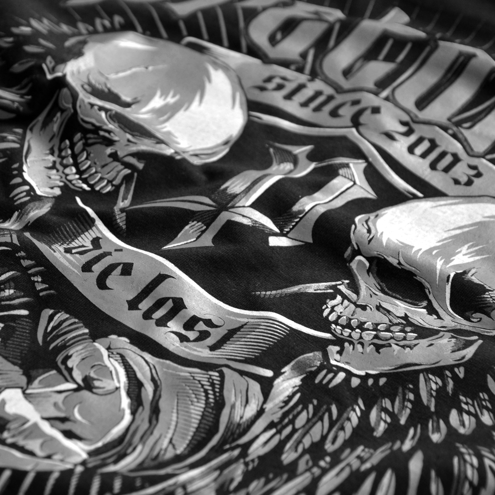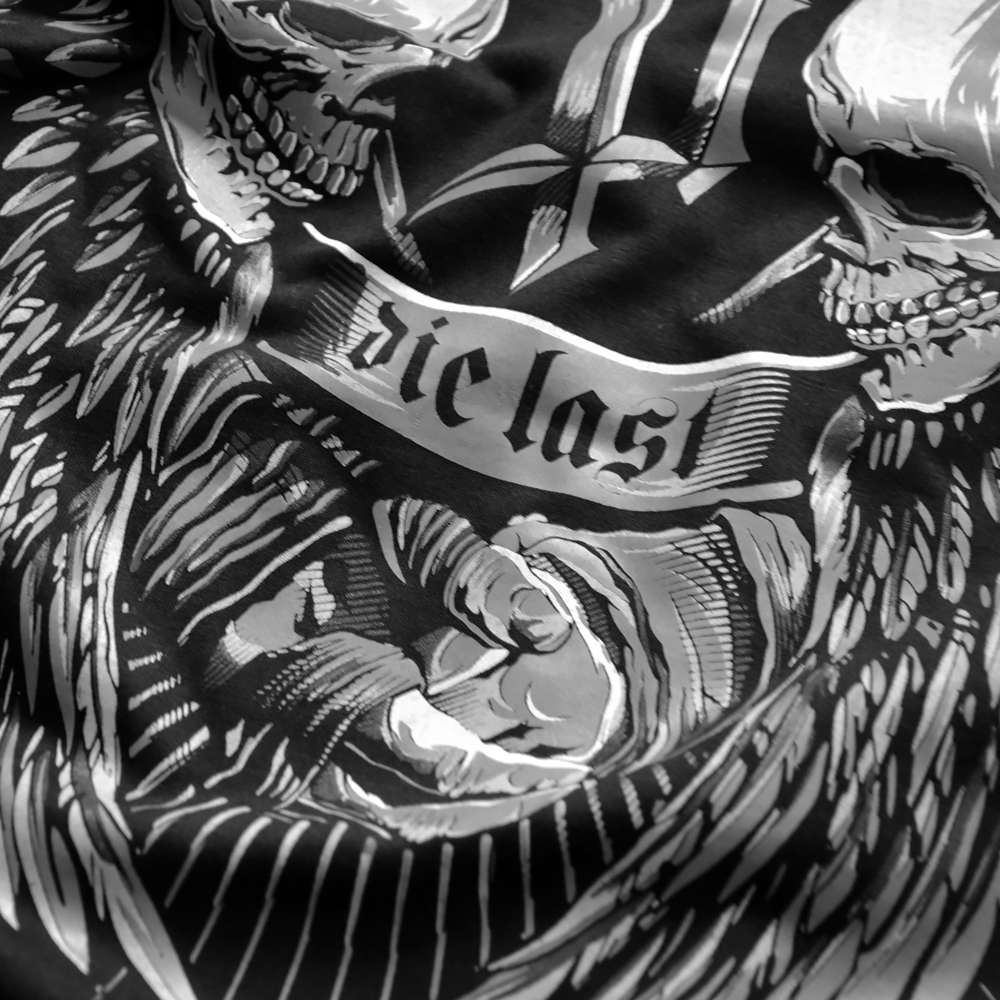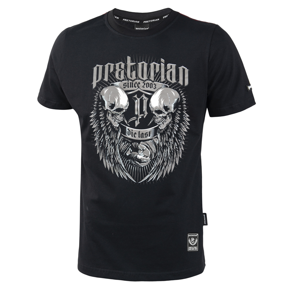 A classic black t-shirt by the Pretorian brand from the Streetwear Collection with a theme Die last. On the front and on the left sleeve the shirt has patches with the brand logo. The Pretorian clothing is characterized by the highest quality of workmanship and attention to details. The product is fully manufactured in Poland.