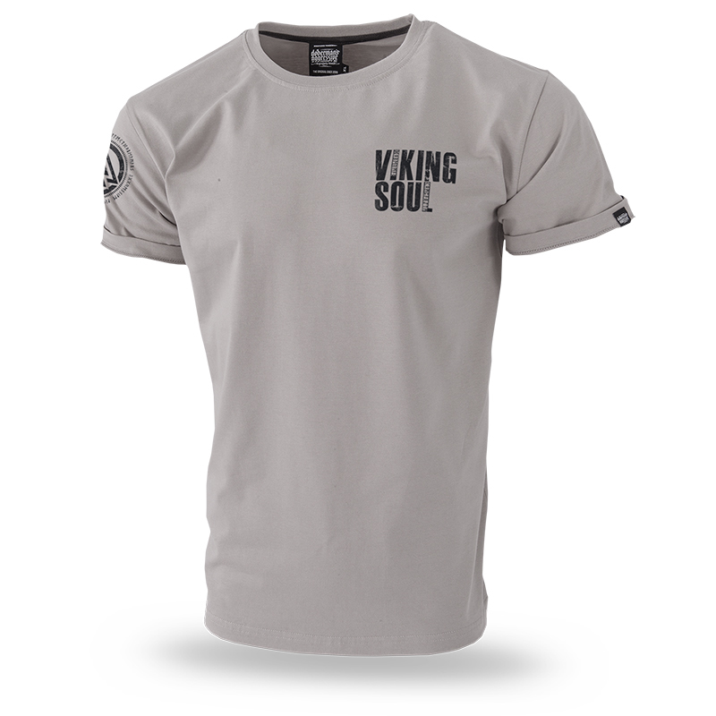 Classic T-shirt cut. It has short sleeves and a narrow welt at the neck for improved wearing comfort. On the left sleeve, there is a small label with the Dobermans Aggressive logo. The t-shirt is made of high-quality cotton. Decorated with prints in various places. On the back there is a large print with the word Viking Soul. Symbols referring to Norse mythology have been inserted into the inscription. On the right sleeve, runic symbols inscribed in a circle. The left breast is decorated with an imprint with the name of the model. The effect of destroying the print was used.