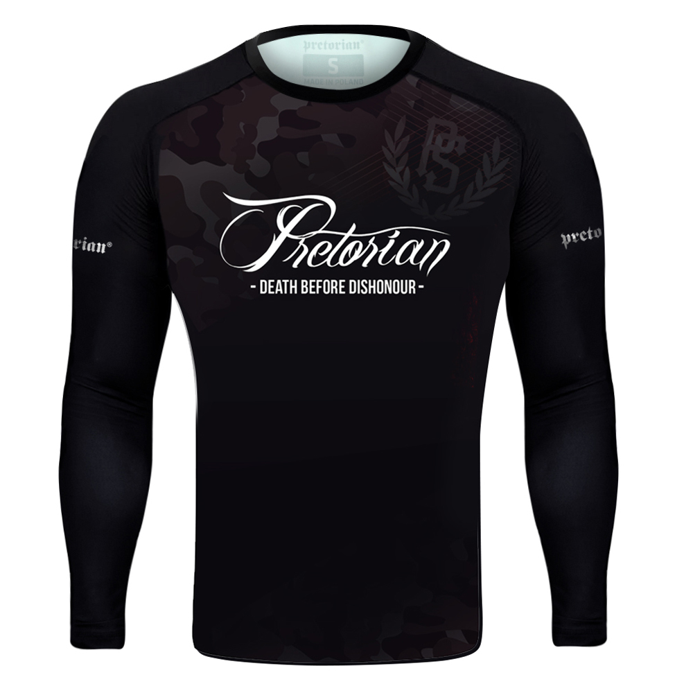 High-quality Pretorian rashguard. An ideal position for lovers of martial arts. The long-sleeved rashguard is perfect for a clinch fight and during the popular BJJ "balls", where the skin is particularly exposed to abrasions against the mat - surely every BJJ fan knows what we are talking about!