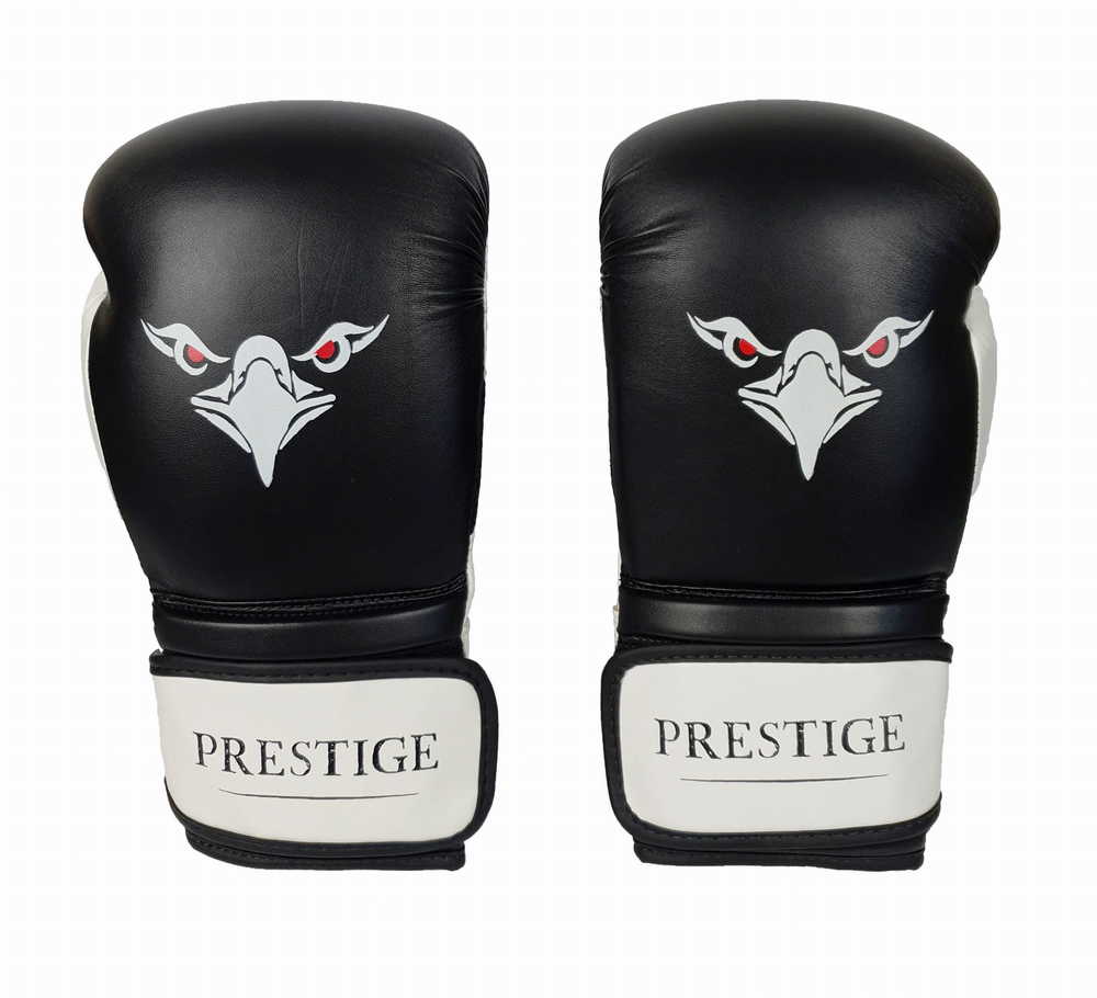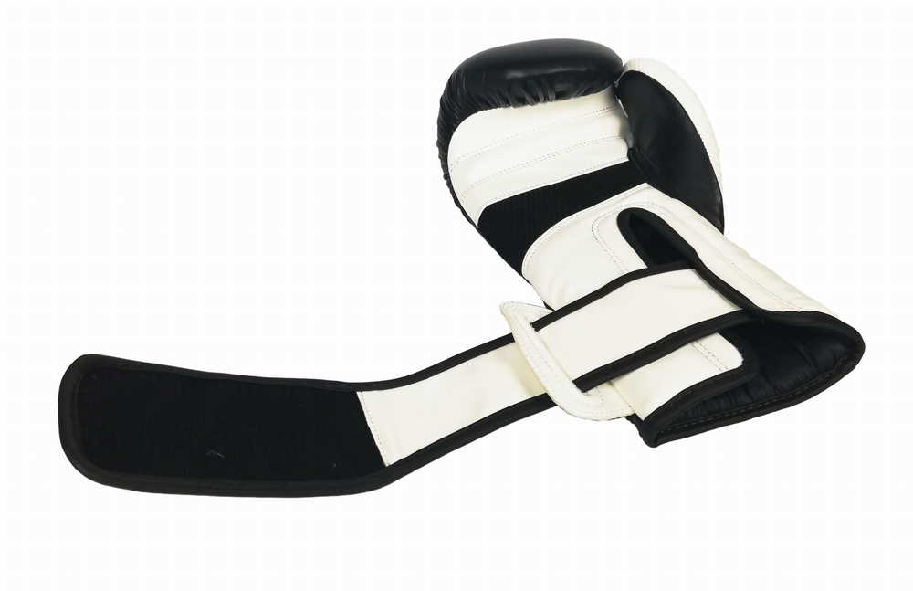 Black and white boxing gloves are made of the best quality synthetic leather. Most of the glove is black. The logo and the rest of the product are made of red. The contrast between the colors emphasizes the design very well.
