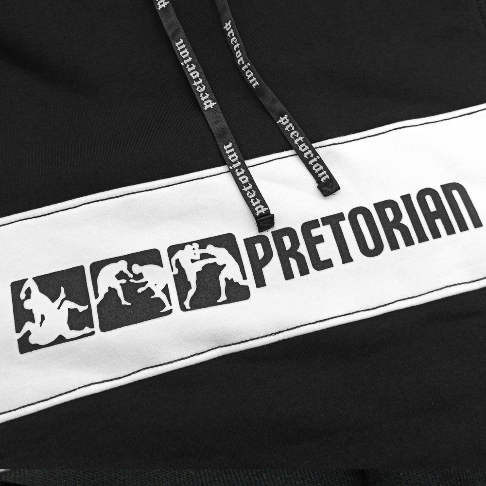 Fight by Pretorian! Panel hoodie by the Pretorian brand with a multifaceted fight theme. Perfect for lovers of ground floor and stand-up fight. The Pretorian clothing is characterized by the highest quality of workmanship and attention to details.