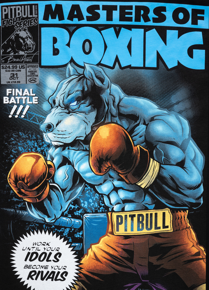 - a large woven stripe with the PIT BULL WEST COAST brand logo at the bottom of the shirt