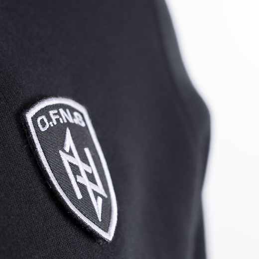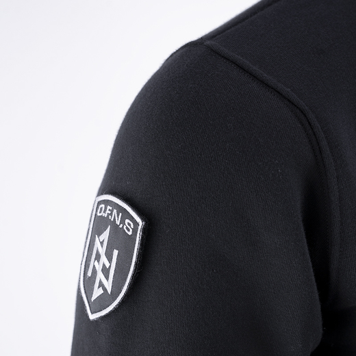Sweatshirt made of warm and high-quality cotton. A velcro shield with the "OFNS" logo is attached on the chest. In addition, on the right sleeve of the sweatshirt there is a second slightly larger shield in the same style to complement the character of the sweatshirt from the OFNS SHIELD collection.