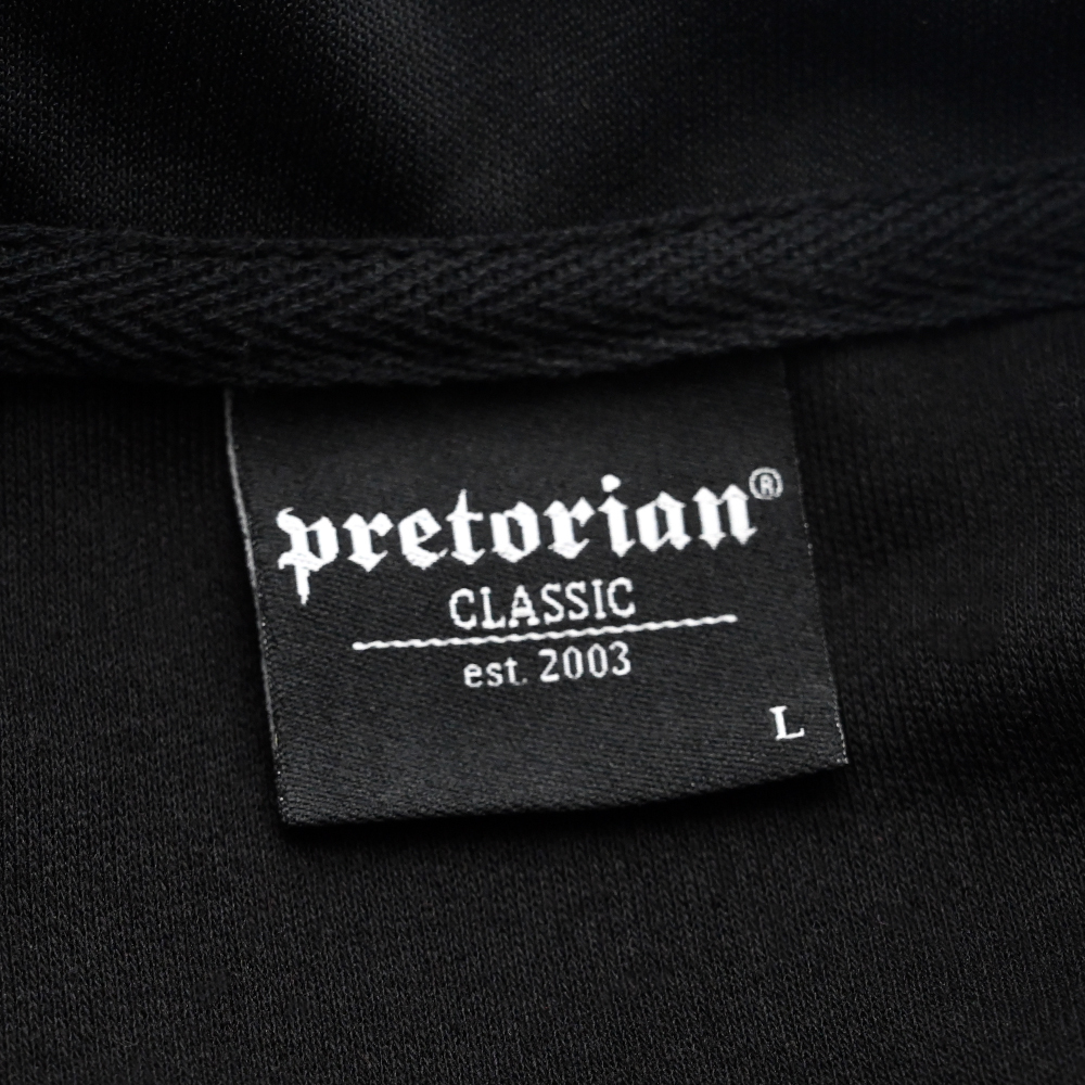 Black sweatshirt from the "Classic" collection by Pretorian with a high stand-up collar. There is a discreet embroidery on the front of the sweatshirt. Elganese jacquard stripe at the bottom. Sweatshirt made of high-quality material - a combination of cotton and polyester. It has two side pockets. Pretorian clothing is characterized by the highest quality of workmanship and attention to the smallest details and details. The product is fully made in Poland.