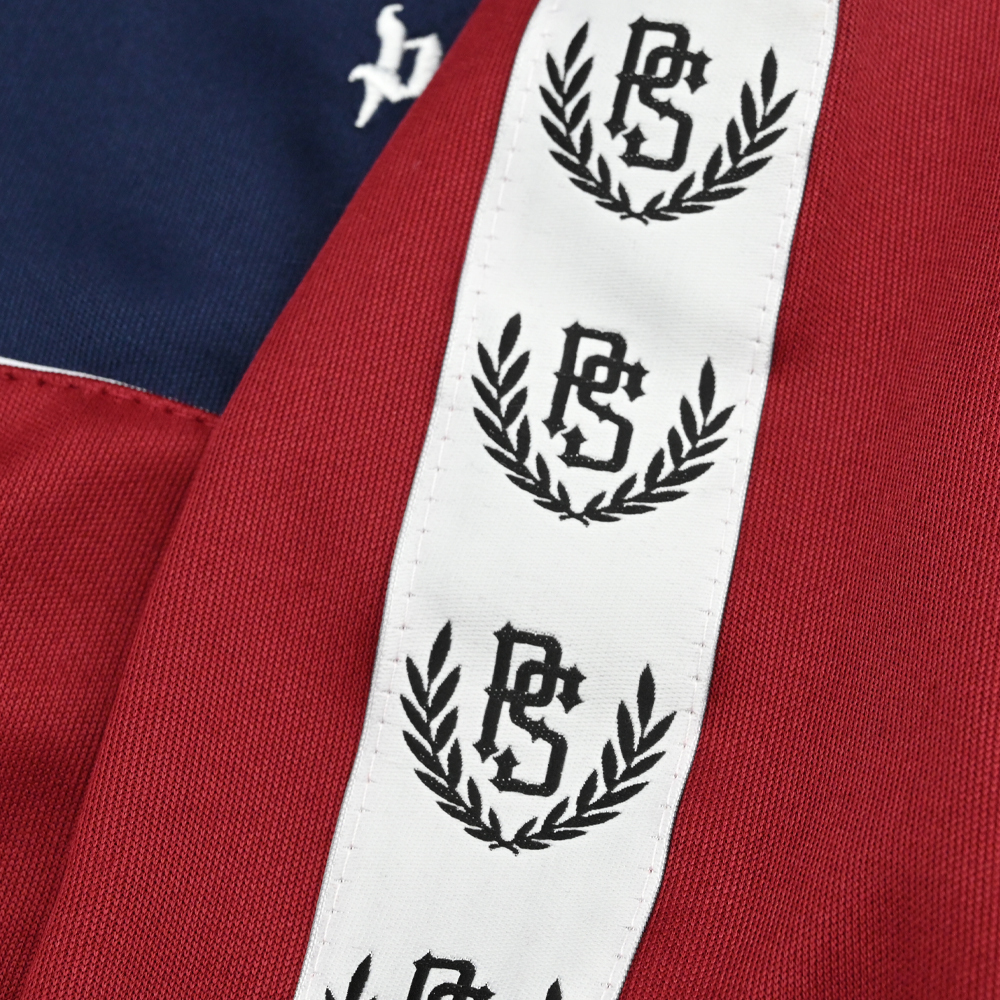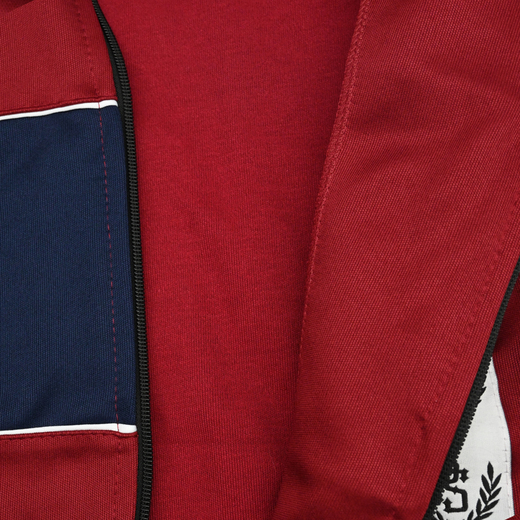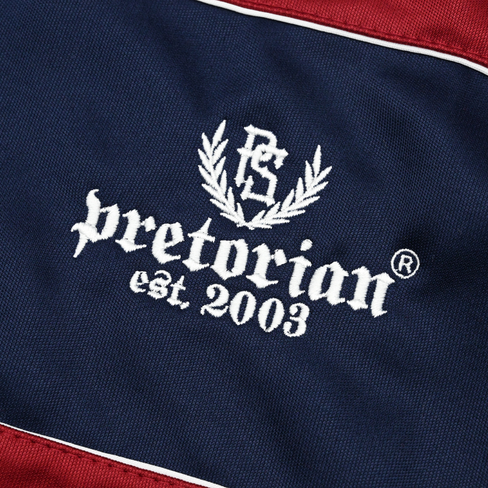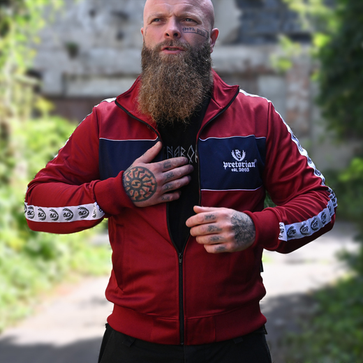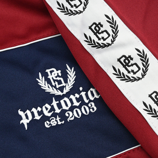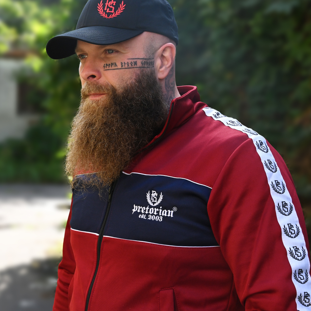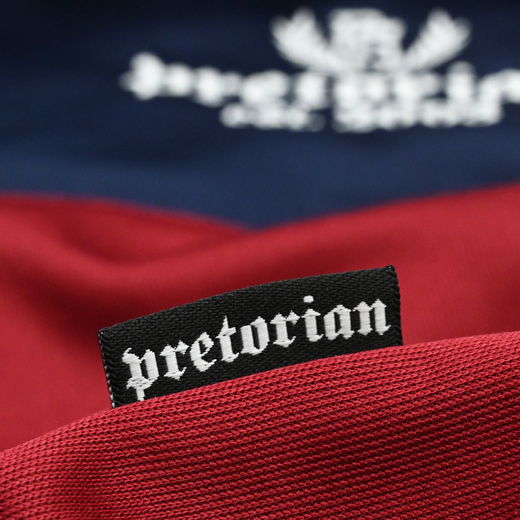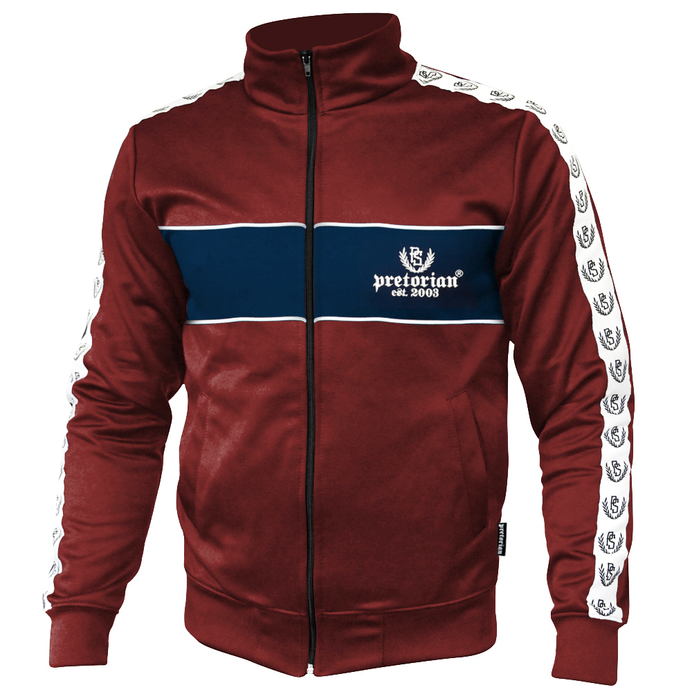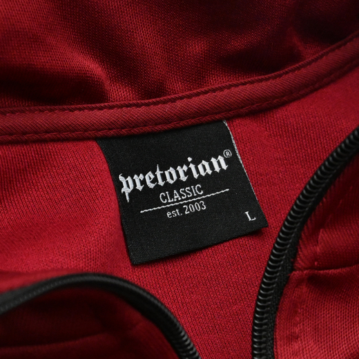 A maroon sweatshirt from the "Classic" collection by Pretorian with a high stand-up collar. There is an embroidery on the front of the sweatshirt. Elganese jacquard stripe at the bottom. Sweatshirt made of high-quality material - a combination of cotton and polyester. It has two side pockets. Pretorian clothing is characterized by the highest quality of workmanship and attention to the smallest details and details. The product is fully made in Poland.