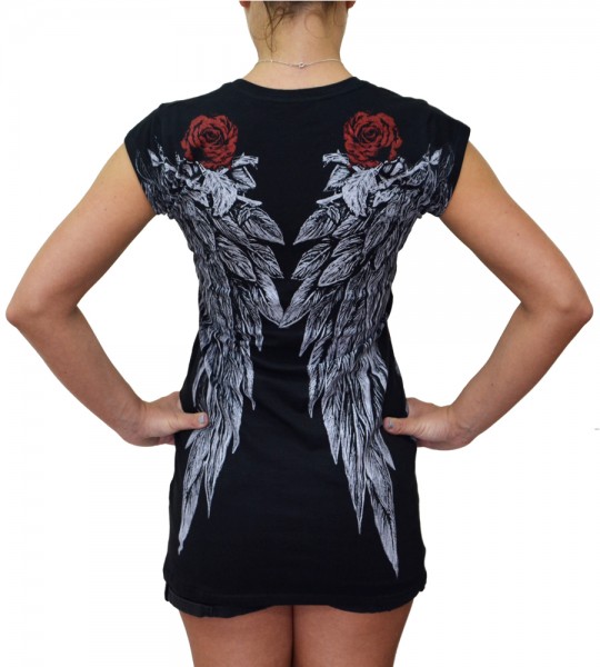 Women's T-shirt with a tunic cut, thanks to which it looks great on a woman's body. It has a large print, which was made using the screen printing method. It is very durable and does not deteriorate during use. When designing and making the T-shirt, the smallest details were taken care of. The product should be washed at a temperature not exceeding 40 degrees, it will allow you to maintain the durability of the print for much longer. When designing and making the T-shirt, the smallest details were taken care of.