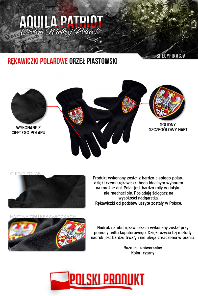 Fleece gloves Aquila "Orzeł Piastowski"