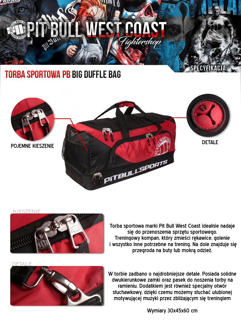 Red - black PIT BULL "BIG DUFFLE BAG" sports bag