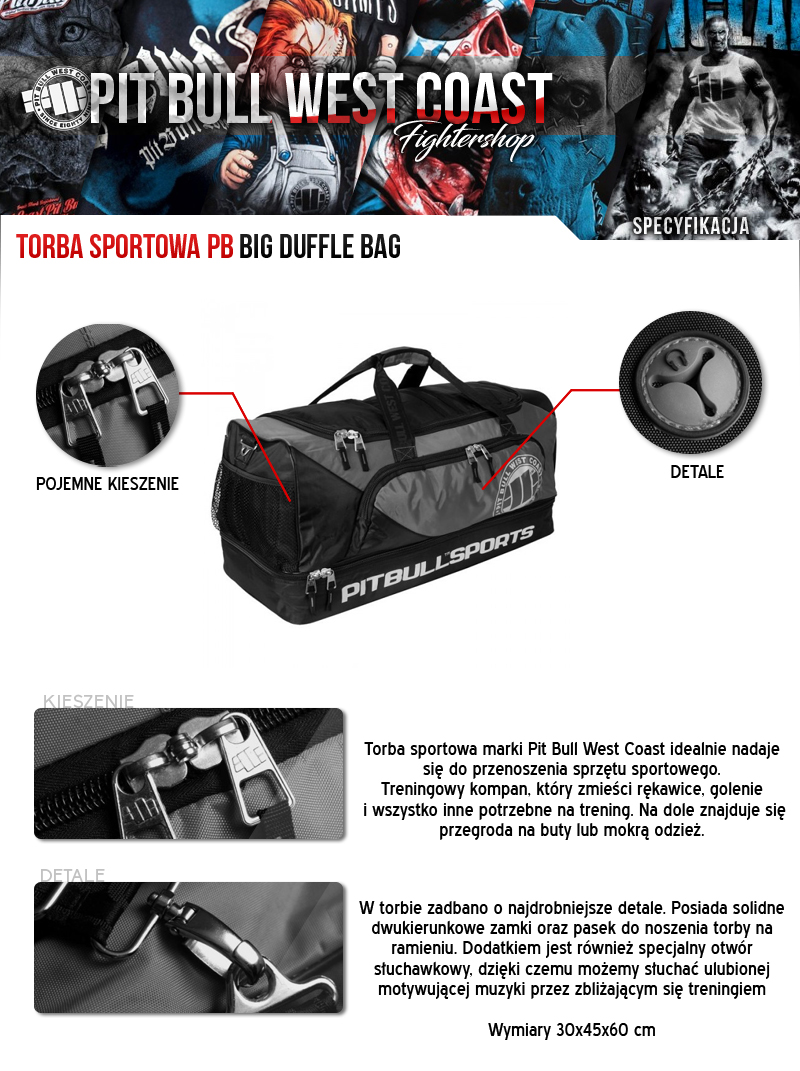 PIT BULL "BIG DUFFLE BAG" black and gray sports bag