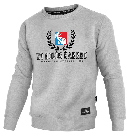 Classic black Pretorian sweatshirt with an aesthetic and refined print. One of the brand's strongest designs with the uncompromising slogan "No Holds Barred". The sweatshirt has a large print on the front and a small one on the back at the neck level. Pretorian brand products are characterized by the highest quality of workmanship and attention to the smallest details.