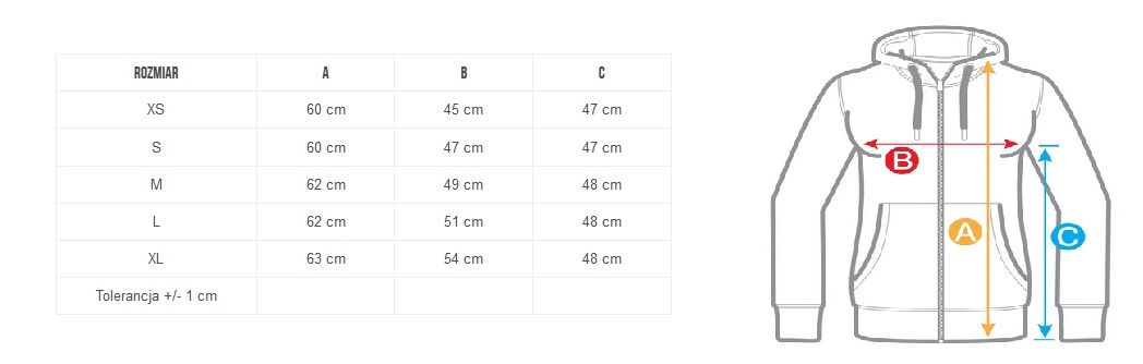 - wide ribbed cuffs on the sleeves and at the bottom of the sweatshirt