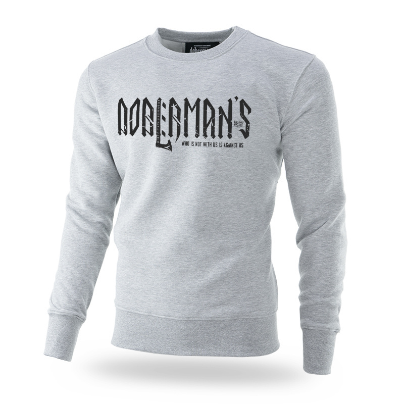Men's classic pullover sweatshirt. Made of high-quality cotton. On the front of the sweatshirt there is a large inscription "Doberman's" in runic style, on the back there is a graphic depicting two axes with runes incorporated into them. The entire graphic is completed with a small Doberman's brand logo.