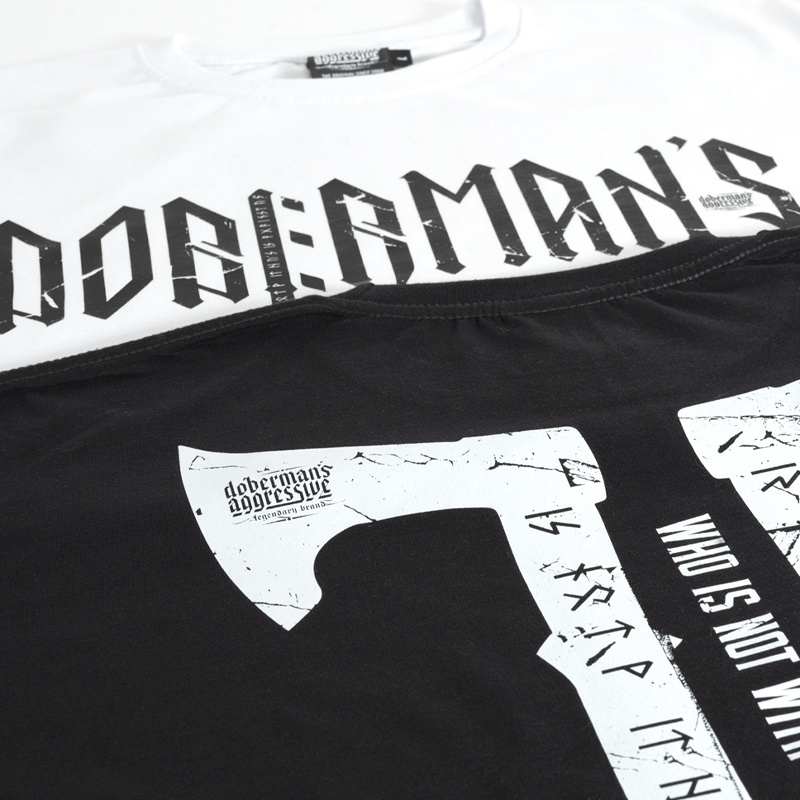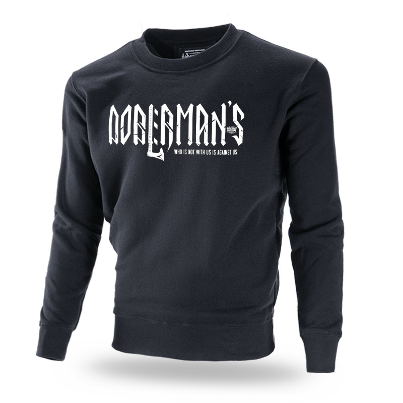 Men's classic pullover sweatshirt. Made of high-quality cotton. On the front of the sweatshirt there is a large inscription Doberman's in runic style, on the back there is a graphic depicting two axes with runes incorporated into them. The entire graphic is completed with a small Doberman's brand logo.