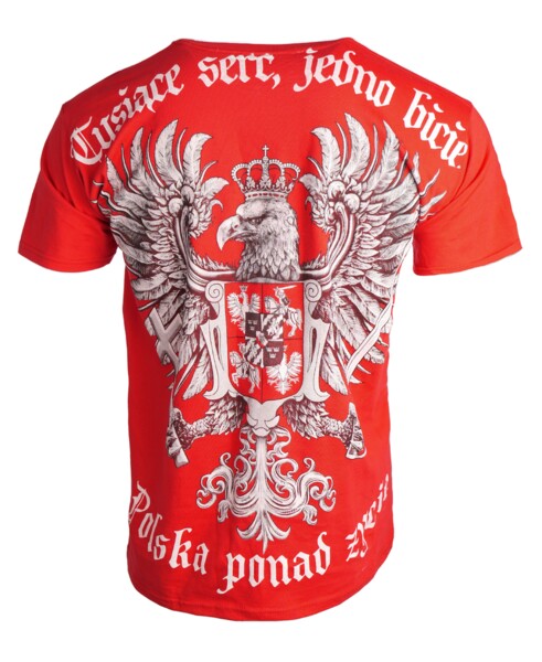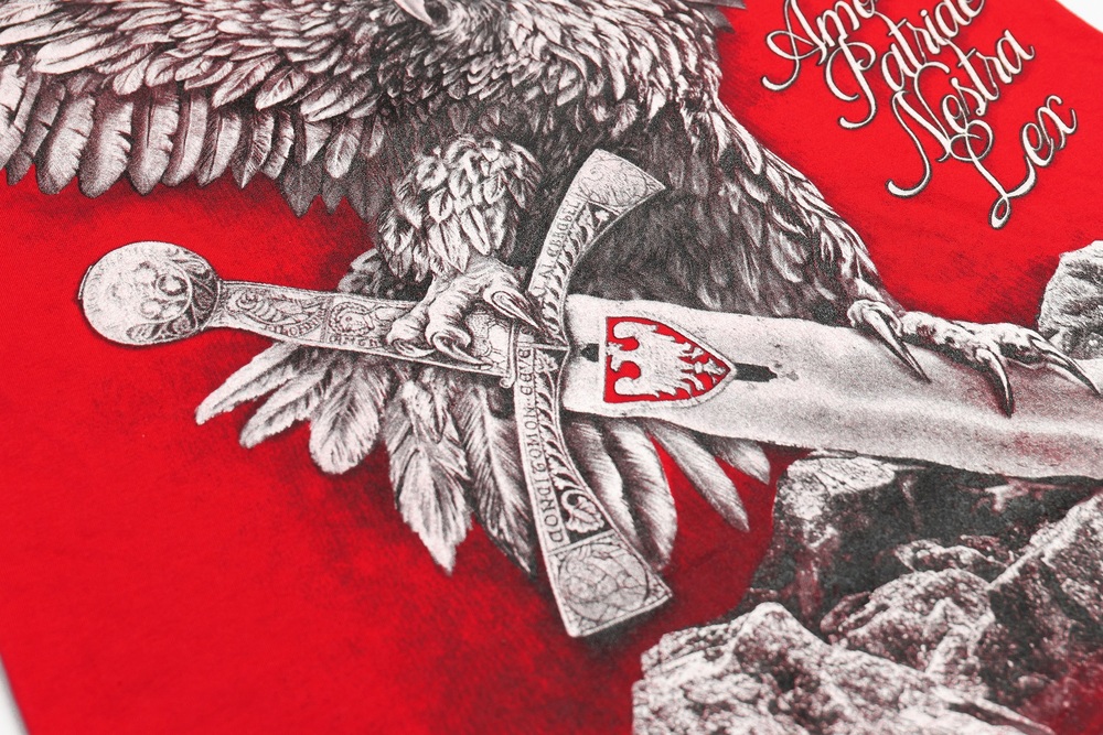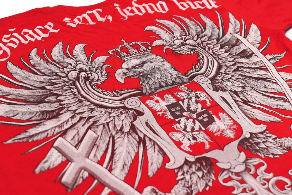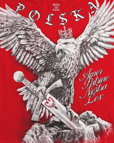 A unique patriotic T-shirt with an Eagle motif. Made of black, high-quality cotton by the Polish clothing manufacturer - Aquila. When designing and making the T-shirt, the smallest details were taken care of. The print on the T-shirt was made using screen printing. It is very durable and does not deteriorate during use. The product should be washed at a temperature not exceeding 40 degrees, this will allow the print to remain durable for much longer.