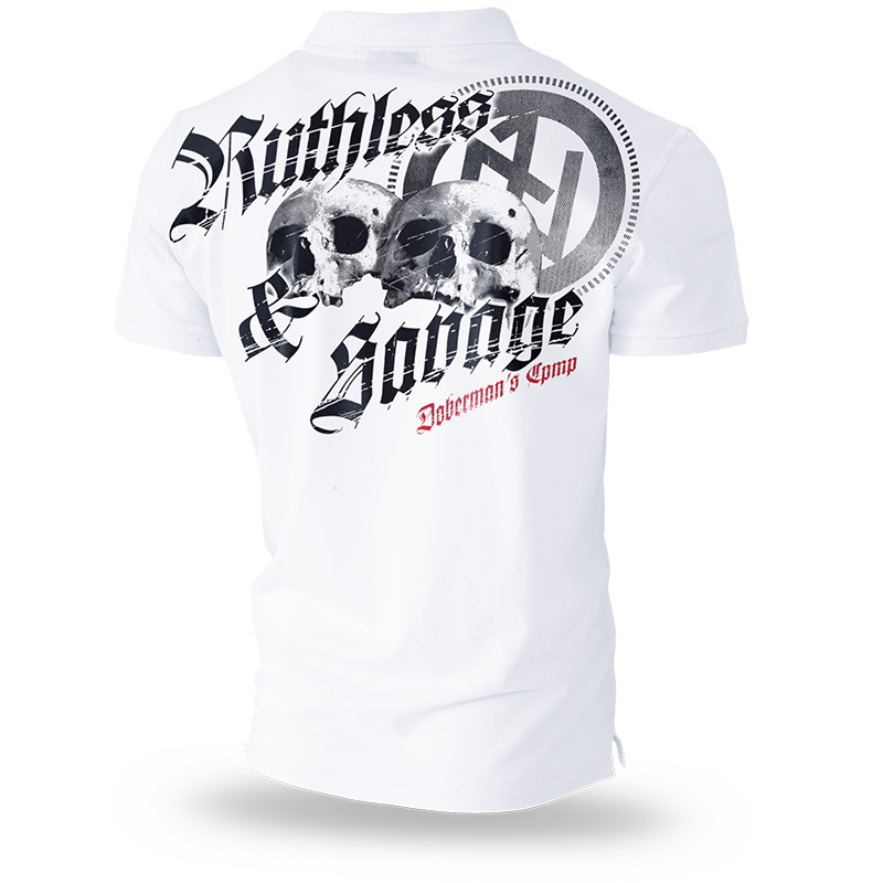 Polo Shirt Dobermans Aggressive "RUTHLESS&SAVAGE TSP199" - white