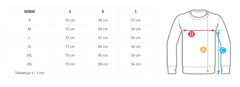 - reinforced, strong ribbed cuffs on the sleeves and at the bottom of the sweatshirt