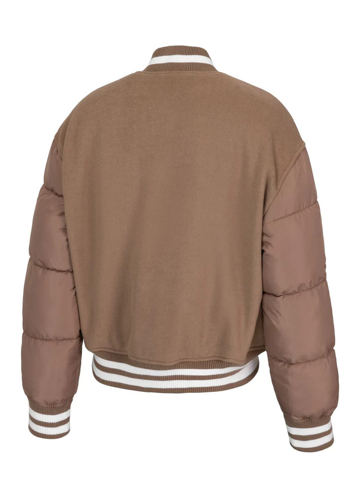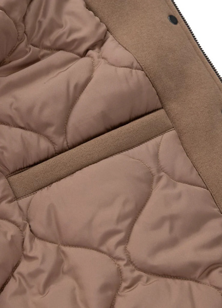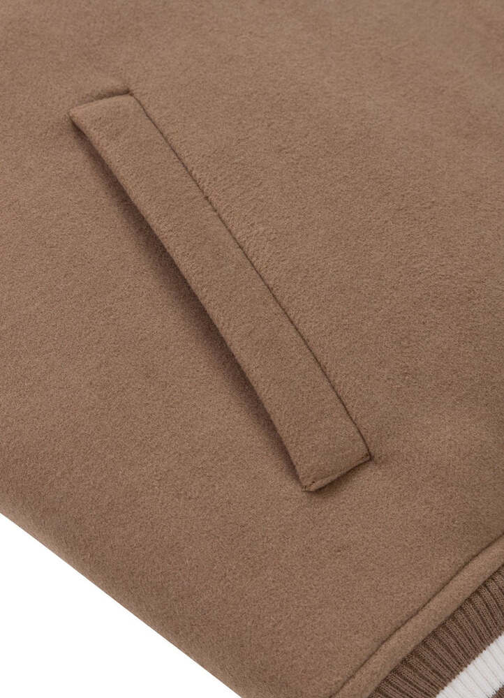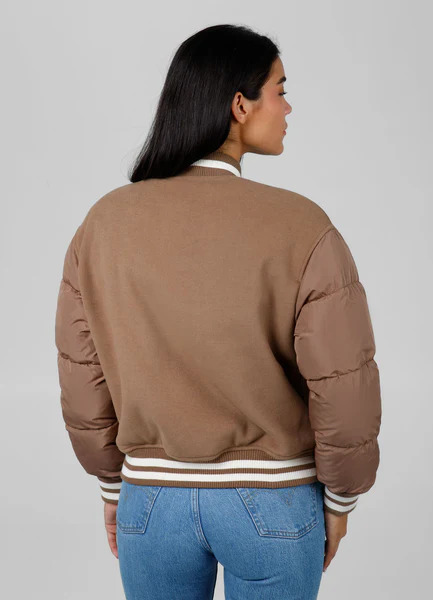 - wide ribbed knit cuffs on the sleeves and at the bottom of the jacket