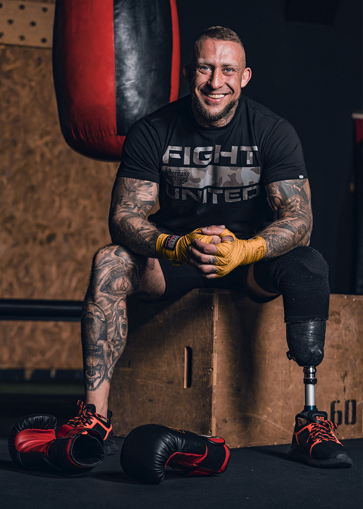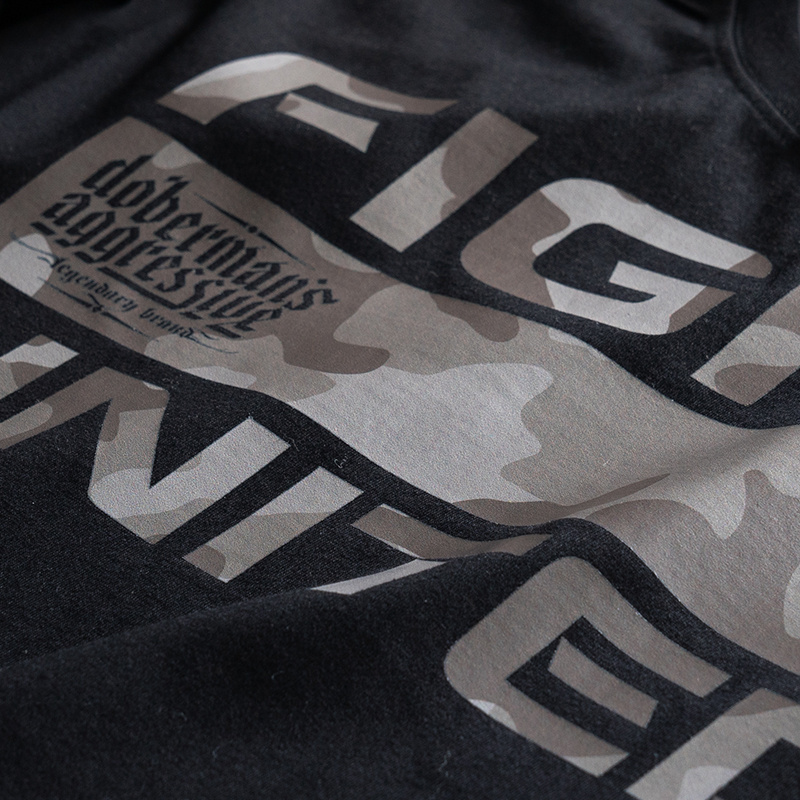 T-shirt made of 200g cotton. On the left sleeve there is a small label with the Doberman's Aggressive logo. On the front of the shirt there is the inscription FIGHT UNITED, which separates the graphic element with the Doberman's brand logo. The entire pattern is made in camouflage colors, which gives a great effect.