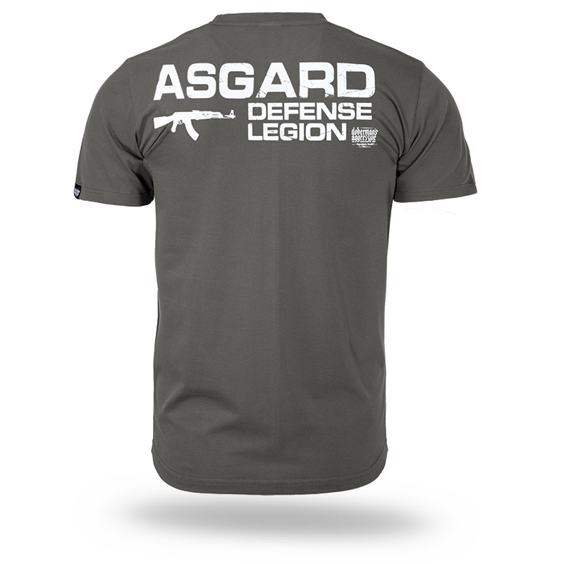 Made of heavyweight cotton. A small label with the brand logo is sewn on the left sleeve. The back of the shirt has the inscription "Asgard Defense Legion". A shotgun is pointed at the text, the graphic is complemented by the Doberman's brand logo on the front, a smaller print.