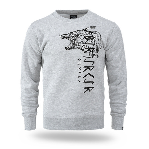 Comfortable sweatshirt made of high-quality cotton. A small label with the brand logo is sewn on the left sleeve. The bottom of the sweatshirt and sleeves are finished with a wide elastic band. On the front of the sweatshirt there is a graphic of a wolf's head with an open mouth. The whole is complemented by the inscription BERSERKER made along the sweatshirt, and a small brand logo.