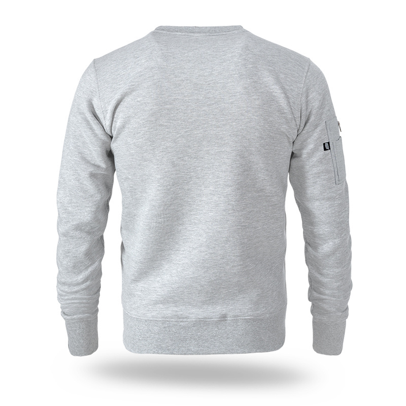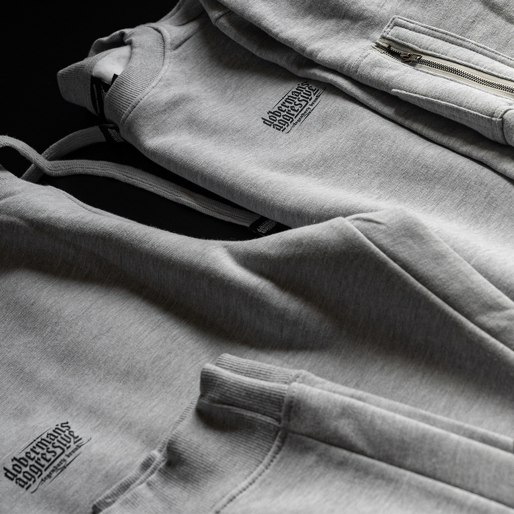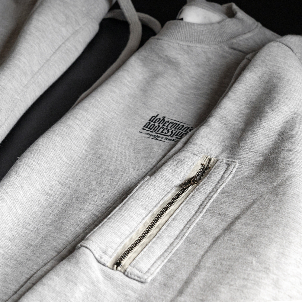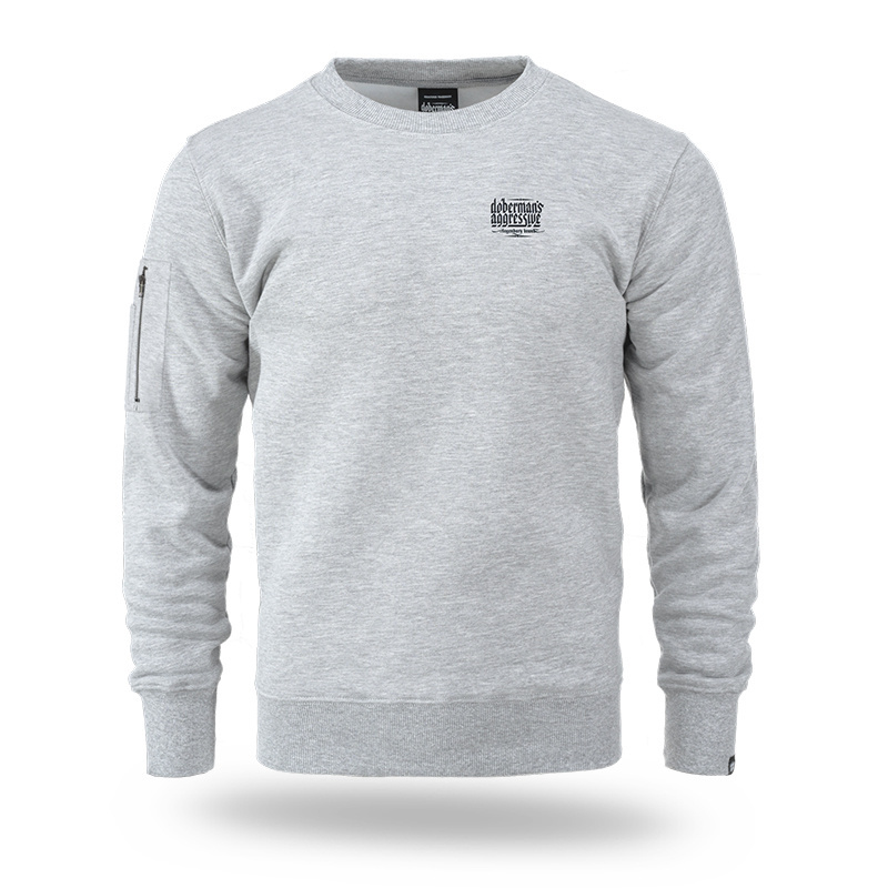 Comfortable sweatshirt made of high-quality cotton. A small label with the brand logo is sewn on the left sleeve. The bottom of the sweatshirt and sleeves are finished with a wide elastic band. On the front of the sweatshirt on the left chest there is a small, one-color Doberman's brand logo. Model with an additional pocket on the sleeve fastened with a zipper.