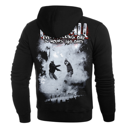 Sweatshirt made by the Polish manufacturer of clothing for fans - Extreme Adrenaline. The smallest details were taken care of when designing and manufacturing the product. The print on the sweatshirt was made using screen printing. It is very durable and does not deteriorate during use. The product should be washed at a temperature not exceeding 40 degrees, it will allow you to maintain the durability of the print for much longer. The sleeves and the bottom of the sweatshirt are finished with black cuffs. The sweatshirt was sewn from scratch in Poland.