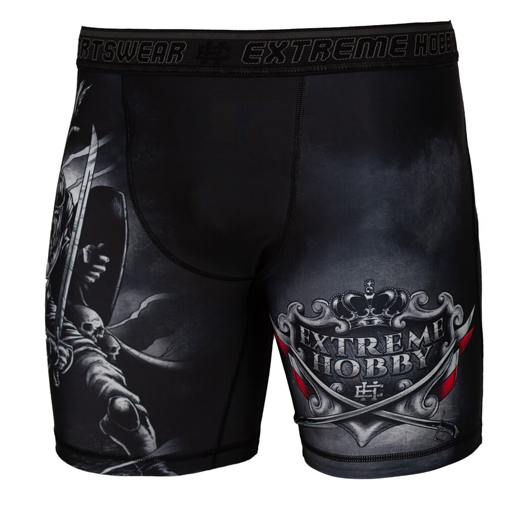 Men's Vale Tudo compression shorts with a jockstrap pocket, popular among martial arts competitors. They can be worn as a top layer or as a base layer under looser shorts or a kimono.