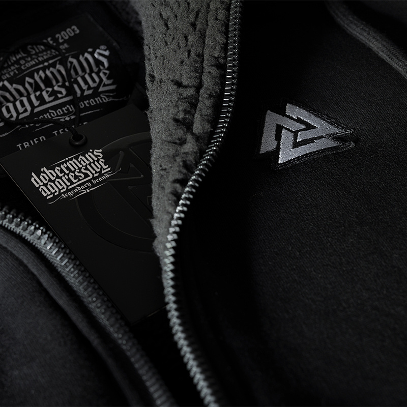 Dobermans Aggressive "VALKNUT KZ251" Sheepskin Zip Hoodie - Black