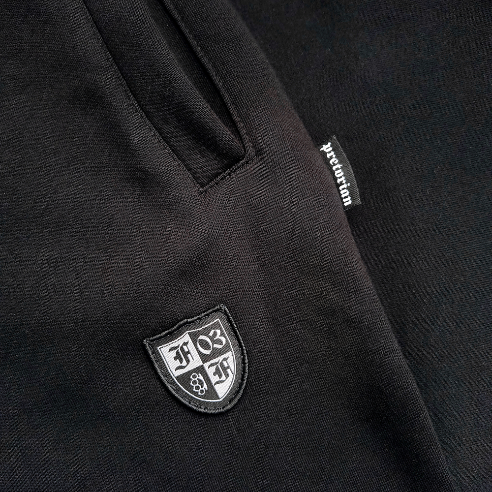 High-quality sweatpants made of high-quality cotton. The pants feature an adjustable waistband with a drawstring. The legs are finished with elastic cuffs. They feature two side pockets and one back pocket. Embroidery is located below the left pocket.