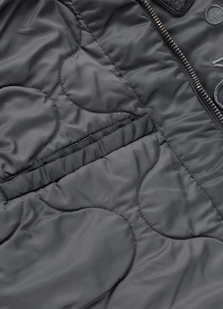 - ribbed knit cuffs on the sleeves and at the bottom of the jacket
