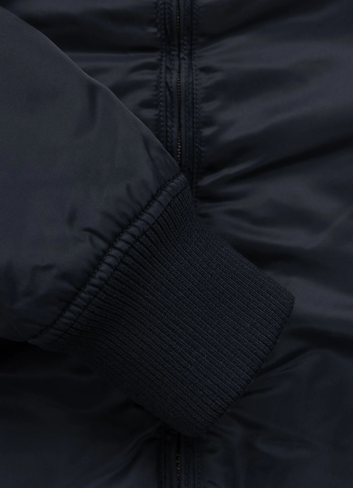 - ribbed knit cuffs on the sleeves and at the bottom of the jacket