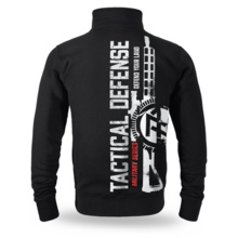 The Dobermans Aggressive men's full-zip sweatshirt, made of high-quality knit fabric, combines everyday functionality with a distinctive military style. Featuring a sturdy full-length zipper, two side pockets, and strong drawstrings, it ensures a precise fit and long-lasting durability. A subtle skull logo adorns the front, while a large, vertical "TACTICAL DEFENSE" print with a weapon motif is featured on the back. This reliable garment is perfect for professionals who appreciate the rugged, tactical aesthetic of the "Military Series."