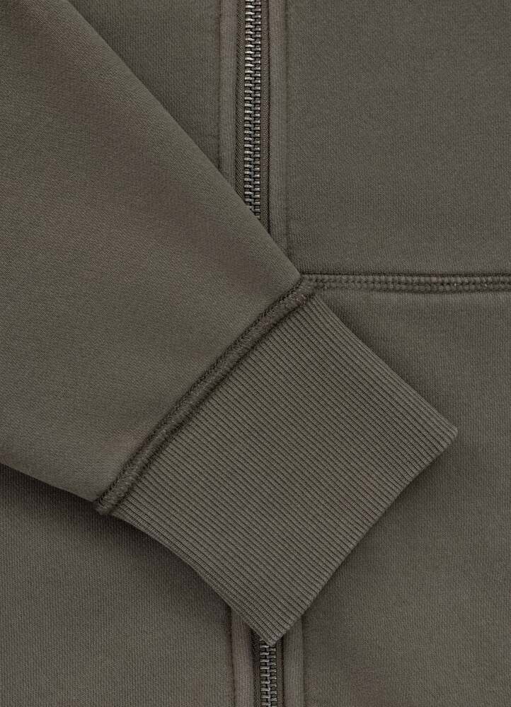 - wide ribbed cuffs on the sleeves and at the bottom of the sweatshirt