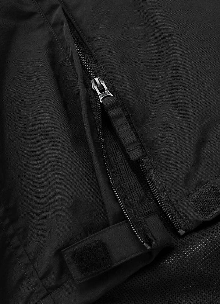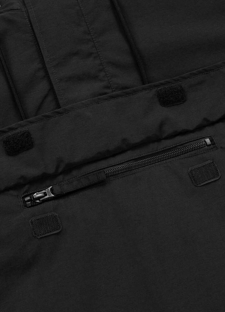 - neckline opens with a zipper additionally covered with a Velcro flap