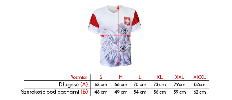 The print on the T-shirt was made using the sublimation method, it is very durable, it is not damaged in washing and does not change color. The product should be washed at a temperature not exceeding 40 degrees, this will allow it to maintain its durability much longer. The jersey is modeled on the football jerseys of the Polish National Team. It is made entirely of polyester, it is very light. Perfect for sporting events and for everyday use.