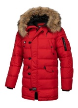 Men's PIT BULL "2 Color Longwood" Hooded Transitional Jacket - Red/Off-White/Navy